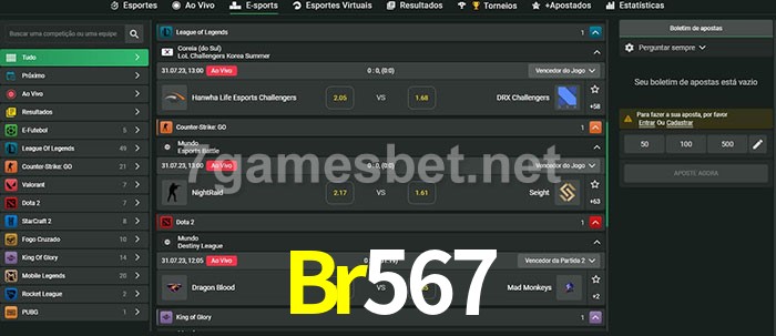 A aposta Br567 oferece aos jogadores a experiência mais conveniente de apostas em eSports!